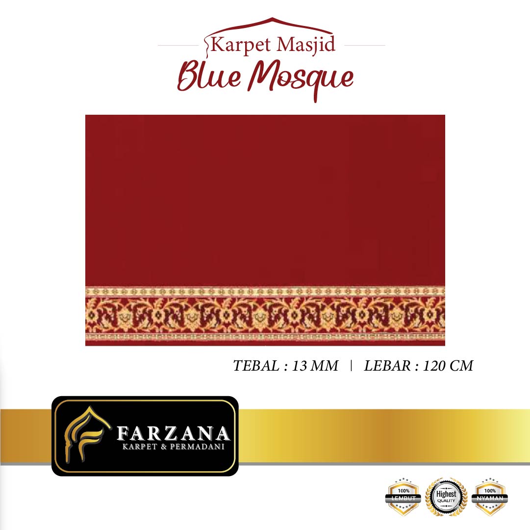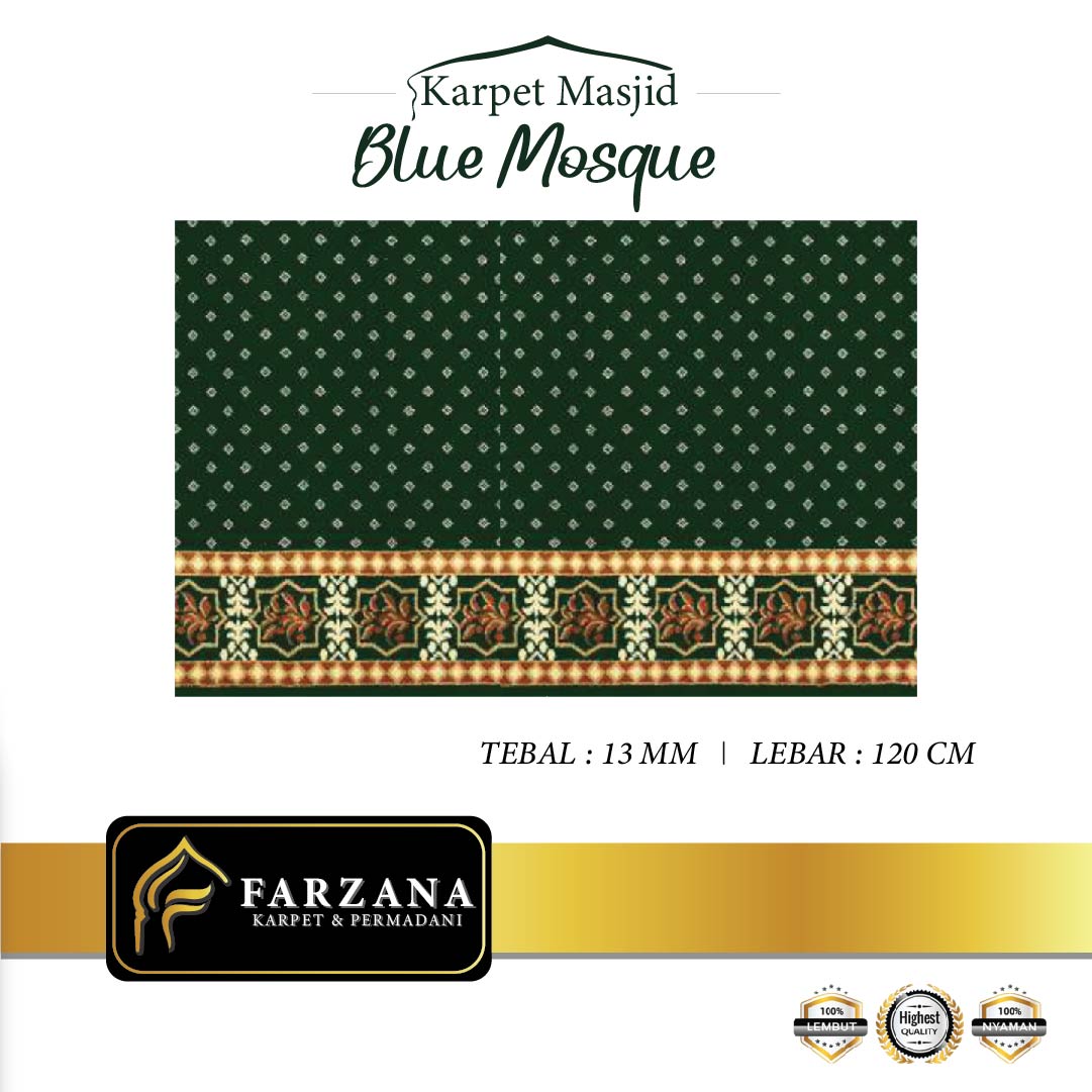 SPESIFIKASI -Merk : BLUE MOSQUE -Tebal : 13 mm -Lebar : 120 cm -Bahan : POLYPHROPILENE HEATSET HALUS -Panjang Roll = 30m