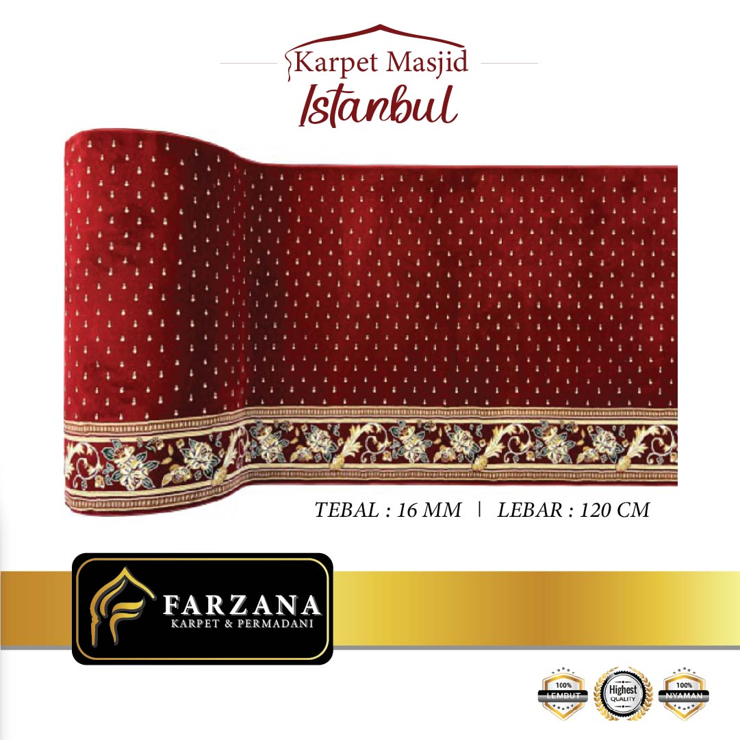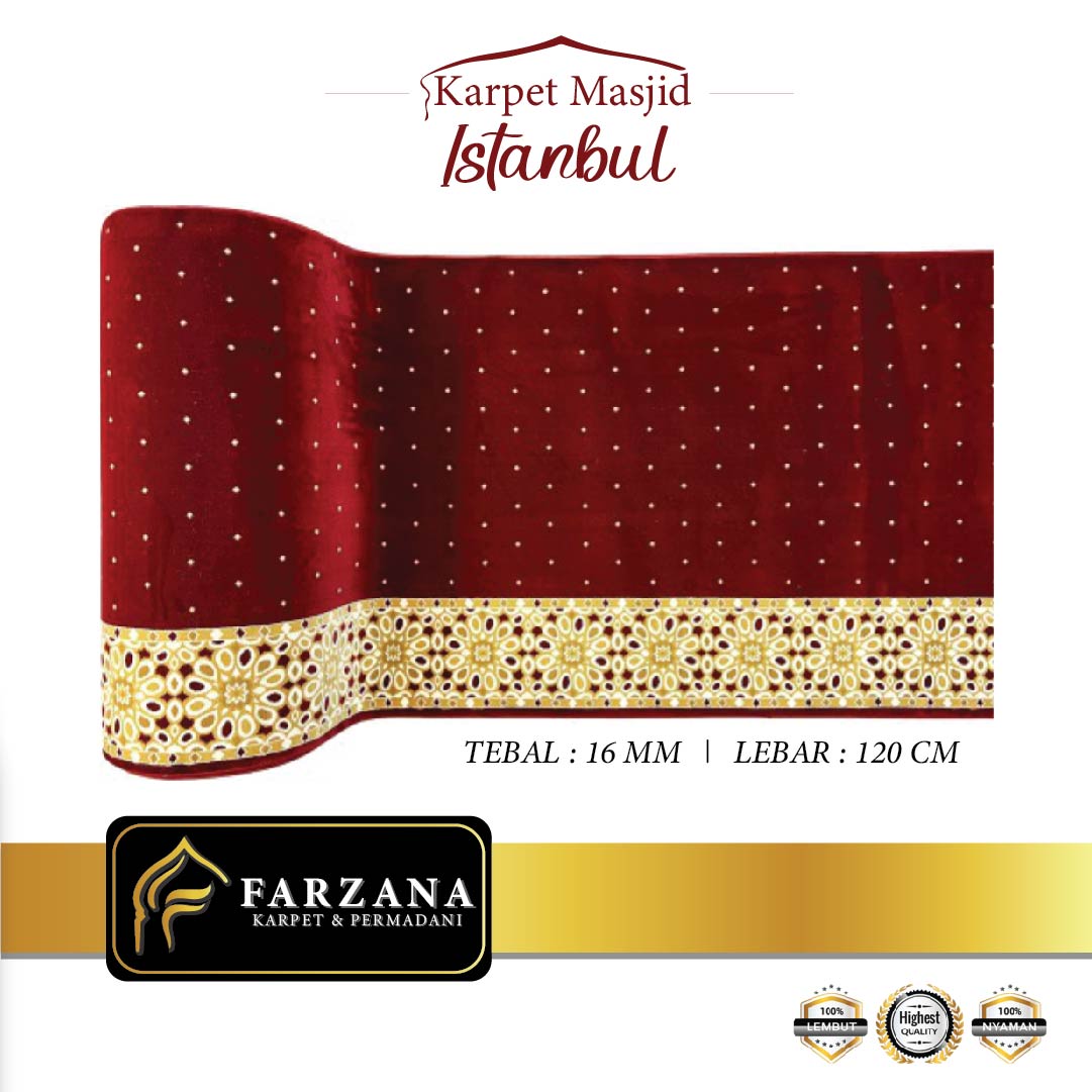 SPESIFIKASI -Merk : ISTANBUL -Tebal : 16 mm -Lebar : 120 cm -Bahan : POLYPHROPILENE -Panjang Roll = 30m