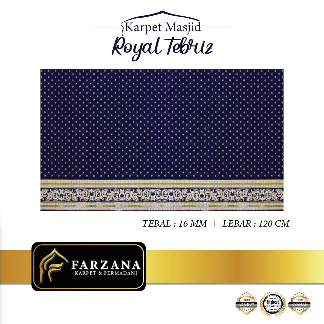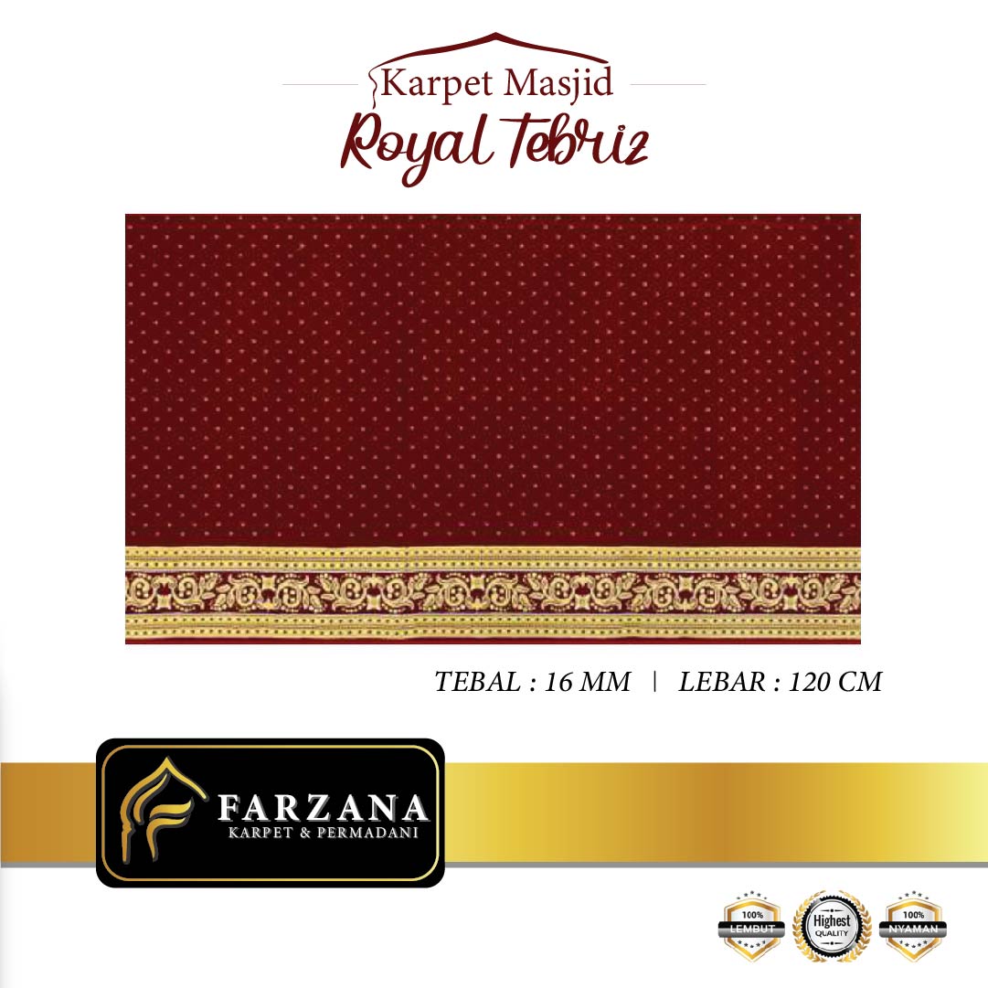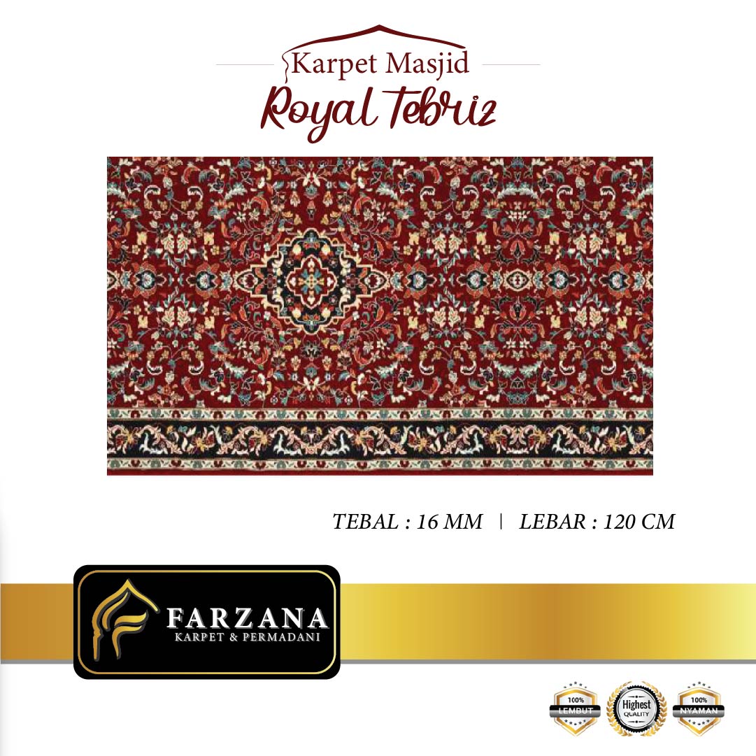 SPESIFIKASI -Merk : ROYAL TEBRIZ -Tebal : 16 mm -Lebar : 120 cm -Bahan : POLYPHROPILENE -Panjang Roll = 30m